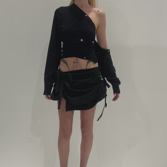 Ruched Mini Skirt - Black