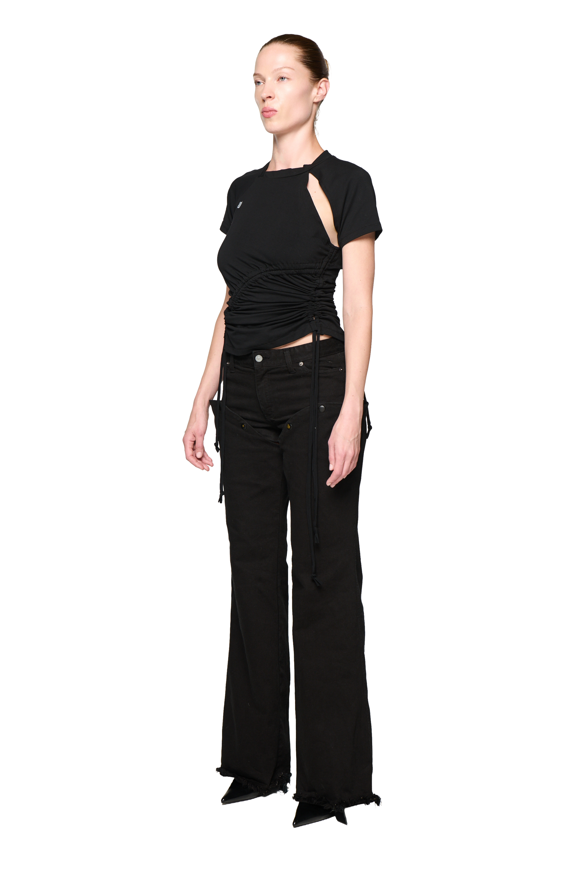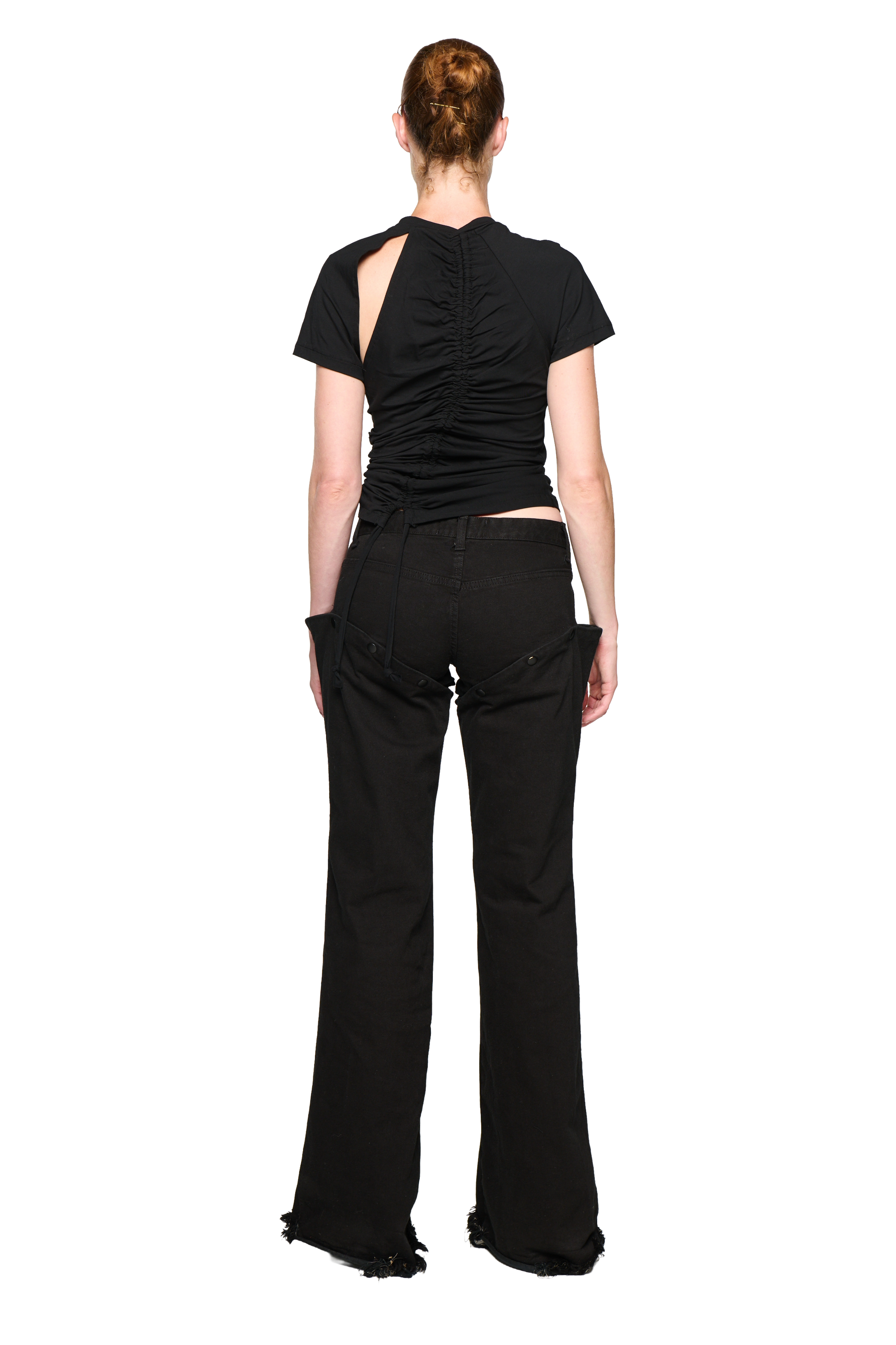 A modern take on classic denim. These mid-rise bootcut jeans feature a raw hem and innovative snap-on construction, allowing the legs to be fully detached and reconfigured.